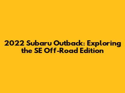 Hey guys! Today, we're diving deep into the 2022 Subaru Outback, specifically focusing on the SE (Special Edition) Off-Road variant. This car is a beast, combining Subaru's renowned reliability with some serious off-road chops. If you're considering buying one or just curious about what makes it special, you're in the right place. Let's get started!