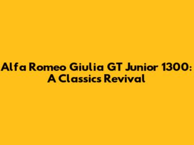 Alfa Romeo Giulia GT Junior 1300: A Classic's Revival