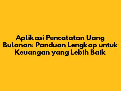 Aplikasi Pencatatan Uang Bulanan: Solusi Cerdas Atur Keuangan
