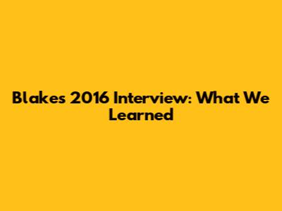 Blake's 2016 Interview: What We Learned