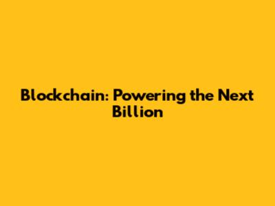 Blockchain: Powering The Next Billion
