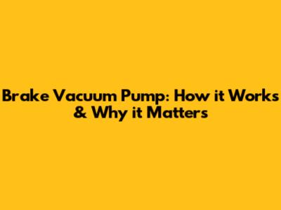 Brake Vacuum Pump: How It Works & Why It Matters