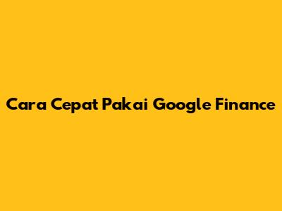 Cara Cepat Pakai Google Finance