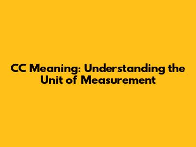 CC Meaning: Understanding The Unit Of Measurement