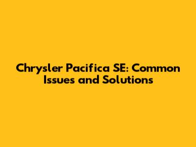 Chrysler Pacifica SE: Common Issues And Solutions