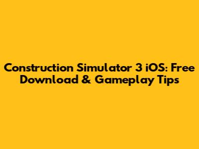 Construction Simulator 3 IOS: Free Download & Gameplay Tips