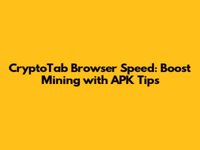 CryptoTab Browser Speed: Boost Mining With APK Tips
