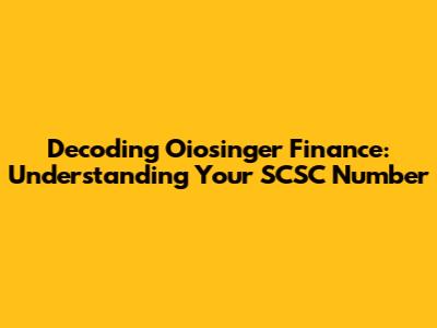 Decoding Oiosinger Finance: Understanding Your SCSC Number