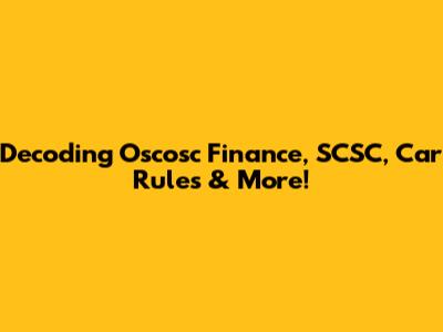 Decoding Oscosc Finance, SCSC, Car Rules & More!