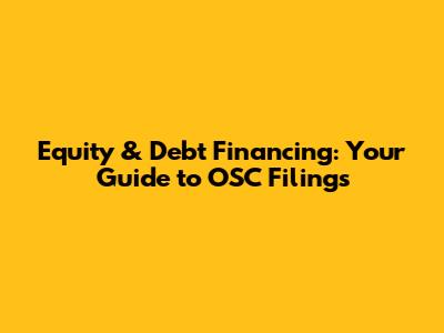 Equity & Debt Financing: Your Guide To OSC Filings