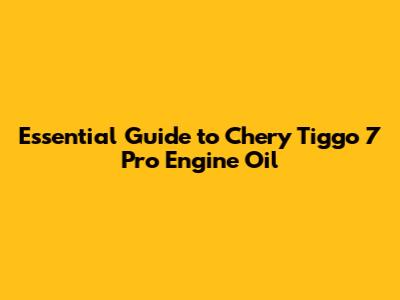 Essential Guide To Chery Tiggo 7 Pro Engine Oil