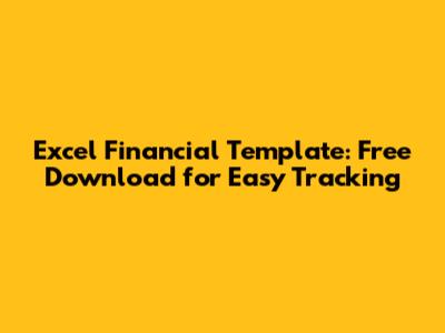 Excel Financial Template: Free Download For Easy Tracking