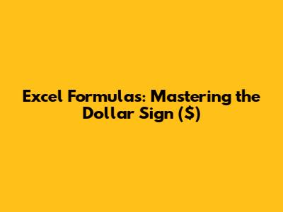 Excel Formulas: Mastering The Dollar Sign ($)