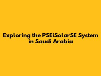 Exploring The PSEiSolarSE System In Saudi Arabia