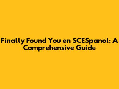 Finally Found You En SCESpanol: A Comprehensive Guide