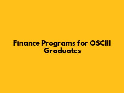 Finance Programs For OSCIII Graduates