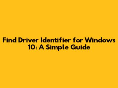 Find Driver Identifier For Windows 10: A Simple Guide