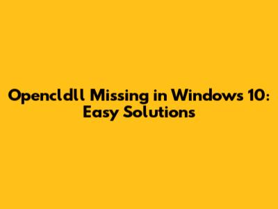 Fix: Opencldll Missing In Windows 10 - Easy Solutions