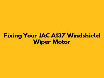 Troubleshooting Your JAC A137 Wiper Motor