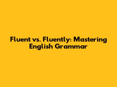 Fluent Vs. Fluently: Mastering English Grammar