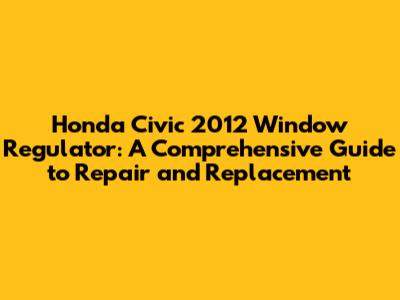 Honda Civic 2012 Window Regulator: Repair & Replacement Guide