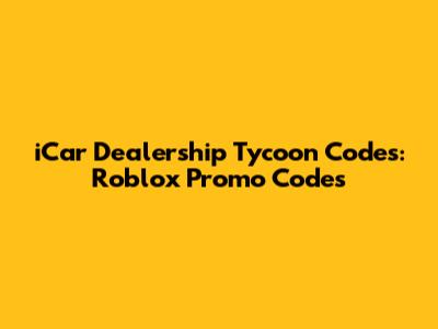 ICar Dealership Tycoon Codes: Roblox Promo Codes