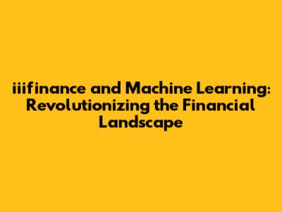 Iiifinance & Machine Learning: The Future Of Finance