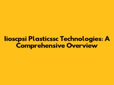 Iioscpsi Plasticssc Technologies: A Comprehensive Overview