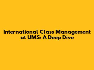 International Class Management At UMS: A Deep Dive
