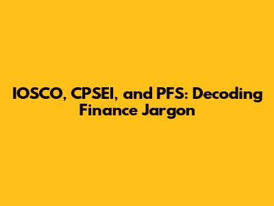 IOSCO, CPSEI, And PFS: Decoding Finance Jargon