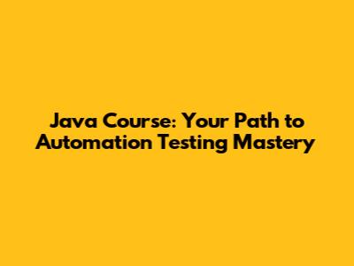 Java Course: Your Path To Automation Testing Mastery