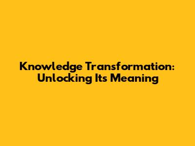 Knowledge Transformation: Unlocking Its Meaning