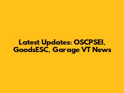Latest Updates: OSCPSEI, GoodsESC, Garage VT News