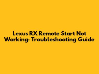 Lexus RX Remote Start Problems & Solutions