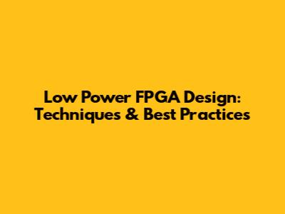 Low Power FPGA Design: Techniques & Best Practices