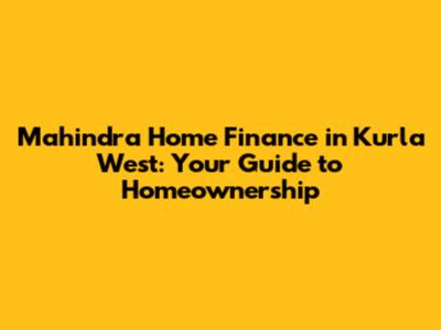 Understanding Mahindra Home Finance and Their Presence in Kurla West