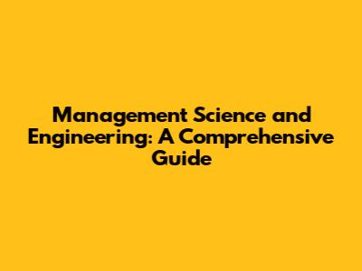 Management Science And Engineering: A Comprehensive Guide