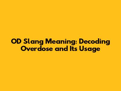 OD Slang Meaning: Decoding 'Overdose' And Its Usage