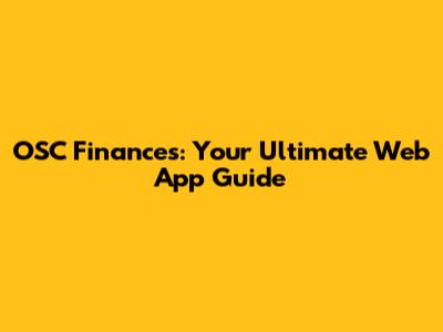 OSC Finances: Your Ultimate Web App Guide
