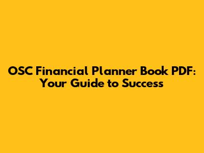 OSC Financial Planner Book PDF: Your Guide To Success