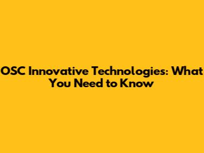 OSC Innovative Technologies: What You Need To Know