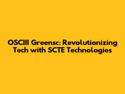 OSCIII Greensc: Revolutionizing Tech With SCTE Technologies