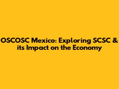 OSCOSC Mexico: Exploring SCSC & Its Impact On The Economy