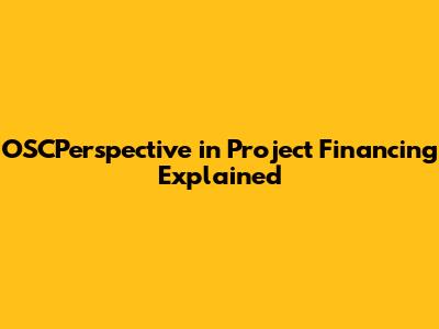 OSCPerspective In Project Financing Explained