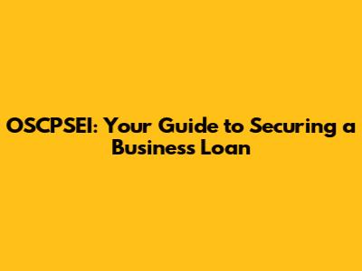OSCPSEI: Your Guide To Securing A Business Loan