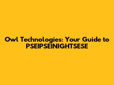 Owl Technologies: Your Guide To PSEIPSEINIGHTSESE