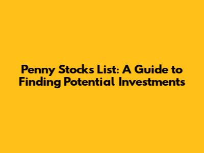 Penny Stocks List: A Guide To Finding Potential Investments