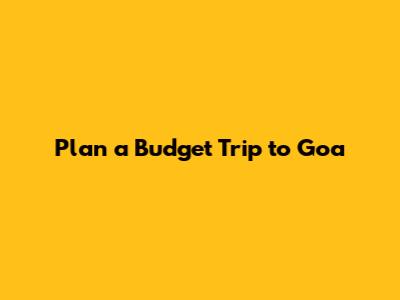 Plan A Budget Trip To Goa