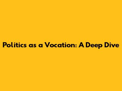 Politics As A Vocation: A Deep Dive