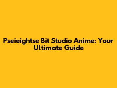 Pseieightse Bit Studio Anime: A Complete Guide